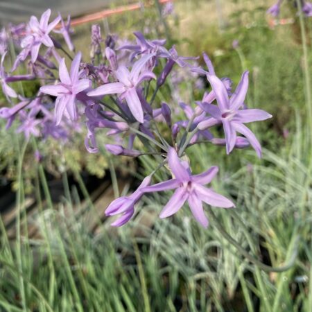 L’ail d’Afrique du Sud (Tulbaghia violacea) est une plante vivace au feuillage fin et aromatique, et aux jolies fleurs tubulaires mauves regroupées en fausse ombelle, appréciée pour son parfum d’ail doux.