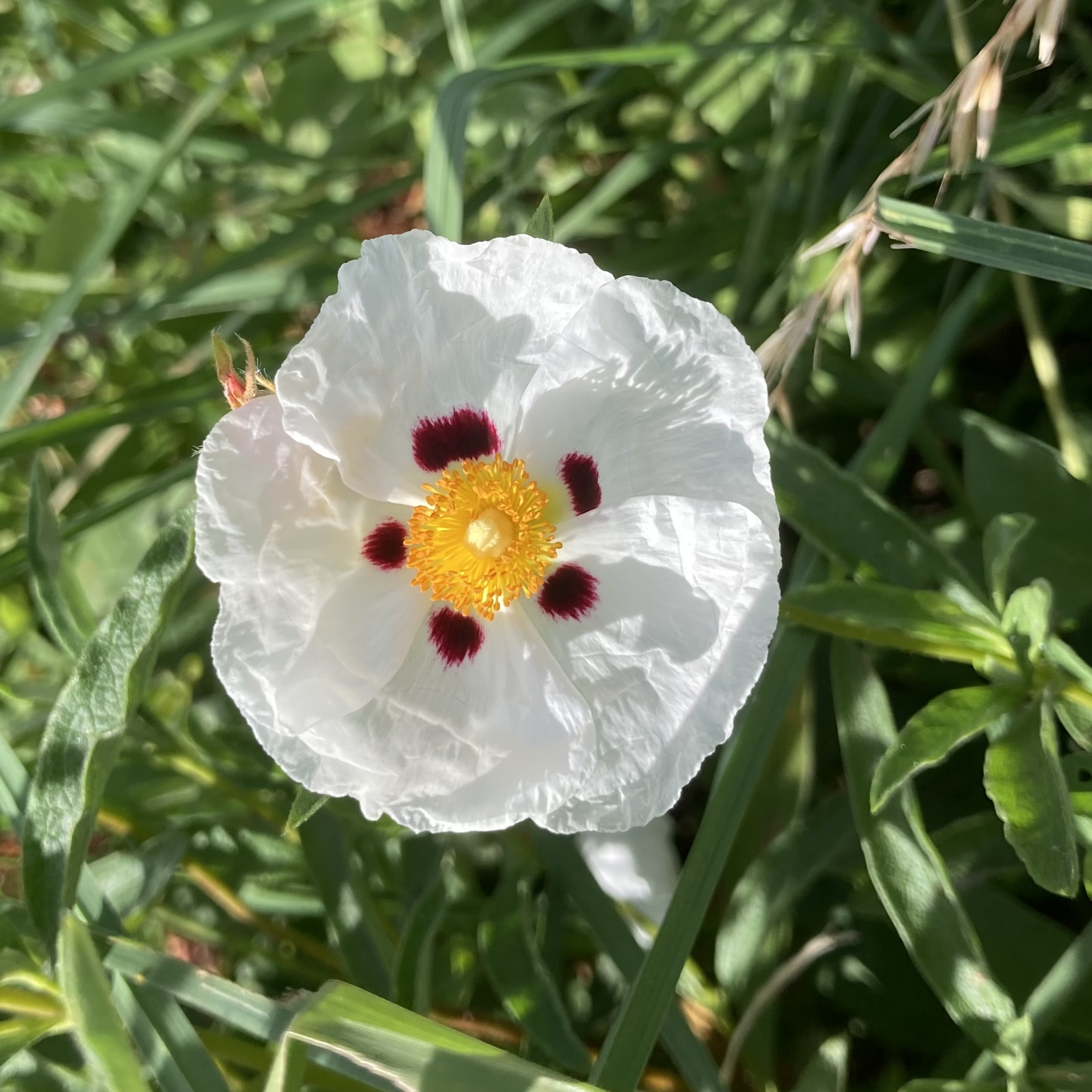 Le Cistus x purpureus ‘Alan Fradd’ est un arbuste méditerranéen à feuillage persistant qui embaume sur son passage. Apprécié pour ses grandes fleurs blanches aux cœurs pourpres, il fleurit abondamment de mai à juillet.