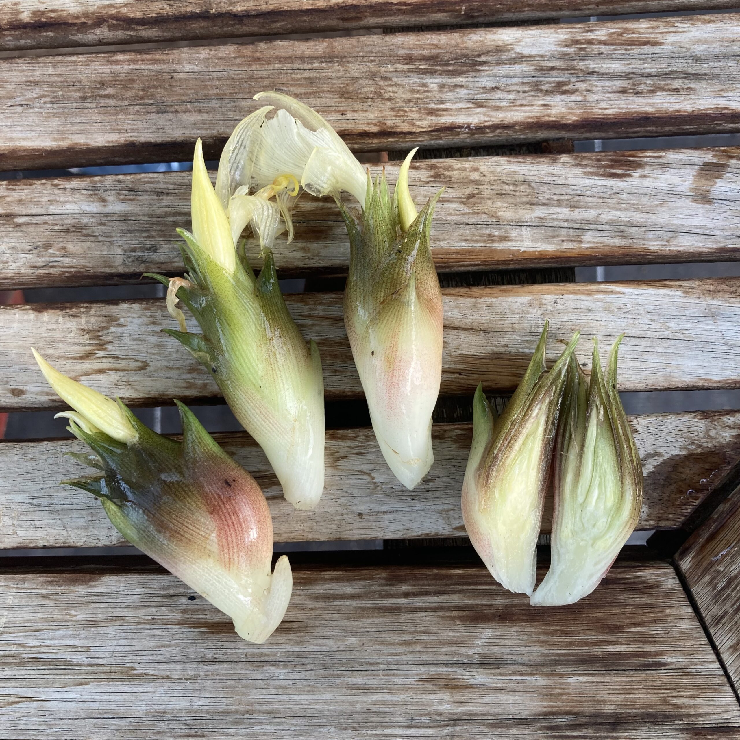 Ce sont ces derniers qui sont prisés dans la gastronomie japonaise et coréenne. Ils sont consommés crus, marinés ou en garniture.Ils apportent une touche d’exotisme et une saveur subtilement piquante (bien que moins piquant que le gingembre classique). Il a le goût du gingembre et d’oignon mêlés. Ses rhizomes peuvent également se consommer. Ils sont plus petits et très ligneux. Il faut de préférence les râper ou les hacher comme le galanga.