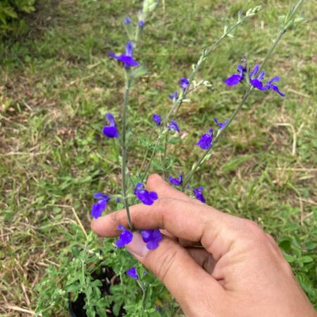 La sauge arbustive bleu-violet (Salvia microphylla ‘Royal Blue’) est une vivace buissonnante au feuillage aromatique et aux fleurs d’un bleu intense, offrant une floraison prolongée du printemps à l’automne.