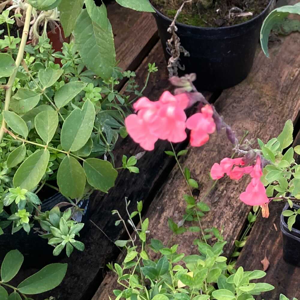 La sauge arbustive saumon (Salvia microphylla ‘Ribambelle’) est une vivace buissonnante au feuillage aromatique et aux fleurs rose saumon, qui fleurit généreusement du printemps à l’automne.